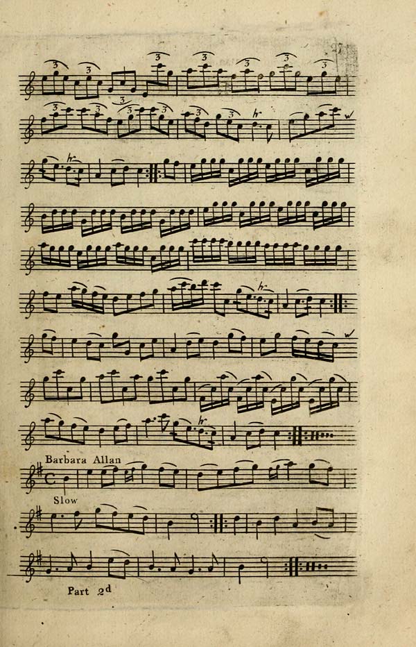 Nel secondo dei sette libri di Oswald, alla pagina 27 compare Barbara Allen, conosciuta anche con il titolo The old woman in the Glen. La scala utilizzata è la Ionica, il tempo 4/4 e la forma musicale AB