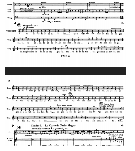 Alla luce delle caratteristiche sopra esposte un’ occasione più appropriata allo scopo, forse, la può fornire invece El Retablo de Maese Pedro ( 1923) di Manuel de Falla, opera di un atto che consta di una sinfonia e sei scene ispirata ad un episodio del Don Quichote di Miguel de Cervantes: